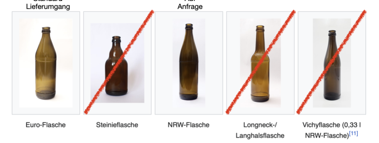 Unsere Bierbeiner werden standardmässig mit den vier Haltern für die Euro-Bierflasche 0,5 Liter geliefert. Halter für die schlankeren und höheren NRW-Bierflaschen können auf Wunsch geliefert werden.