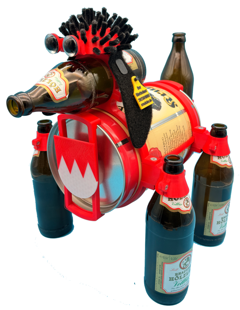 Gut gemacht, jetzt kann die Party beginnen, Dein Bierbeiner ist am Start und kann verschenkt werden.