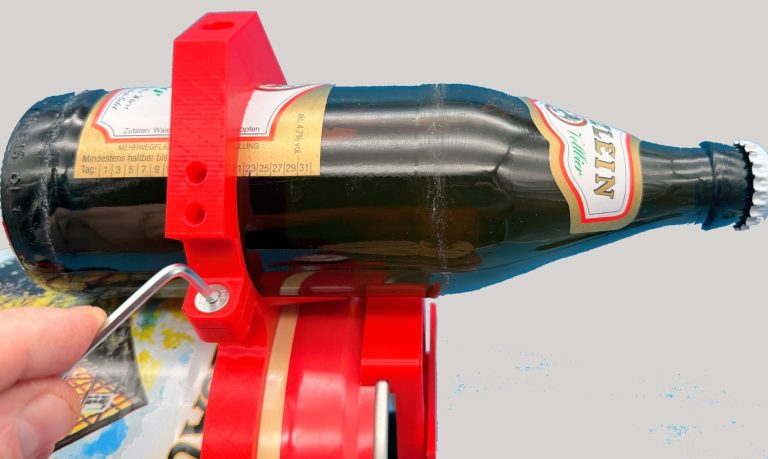 Abschließend noch die vierte Flasche nach gleichem Prinzip mit dem letzten freien, oberen Flaschenhalter befestigen.